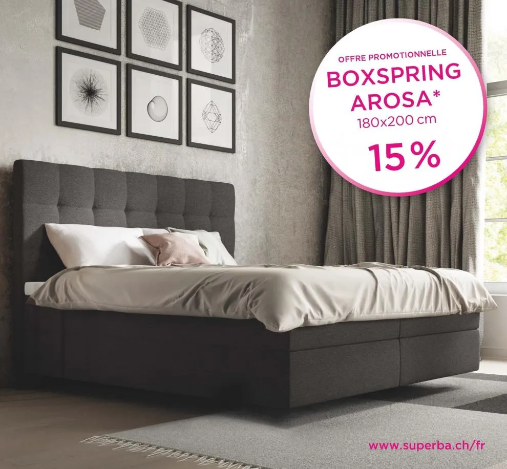 Voici votre double avantage immédiat : économisez 15 % et réjouissez-vous de dormir dans votre nouveau lit Boxspring dans 2 semaines seulement !
