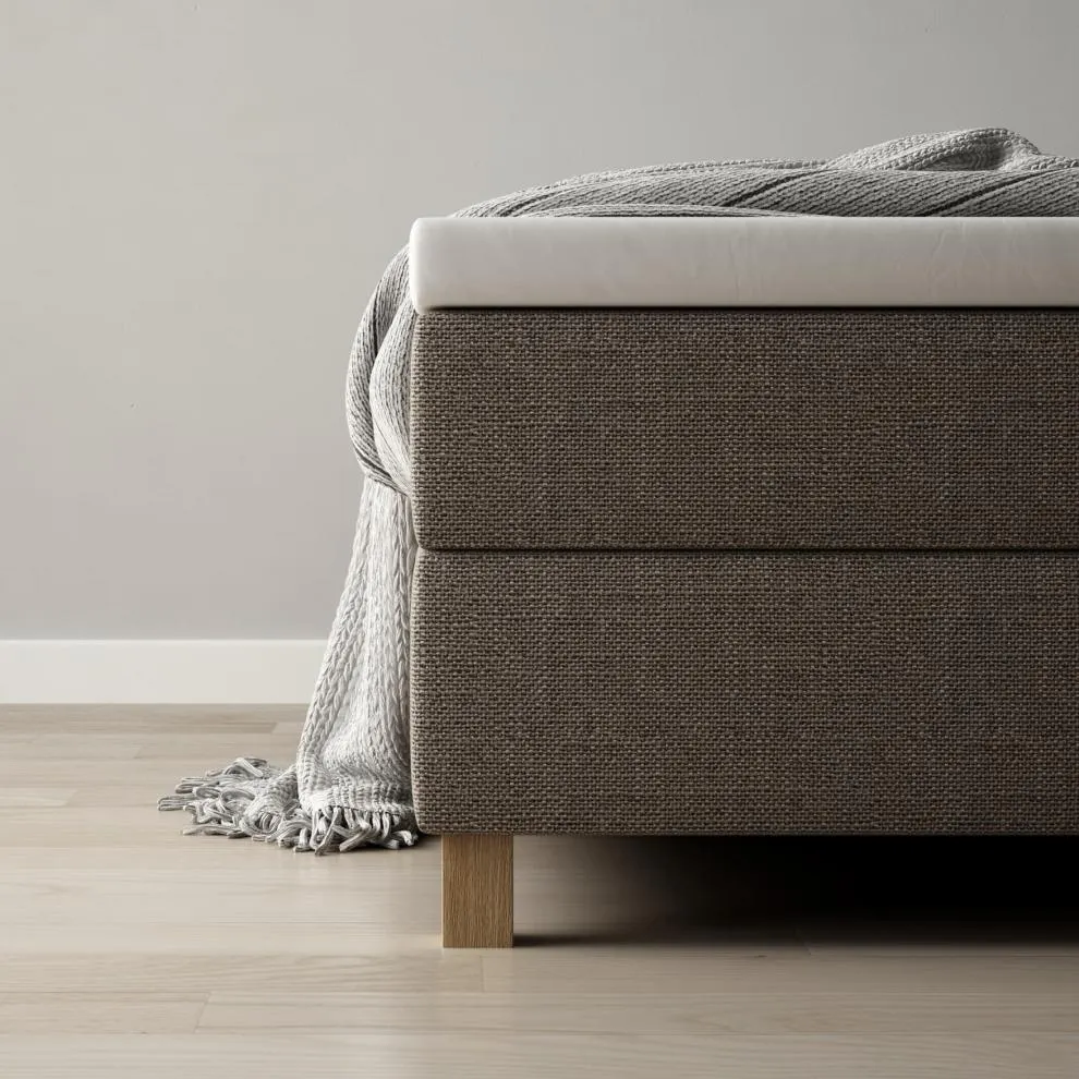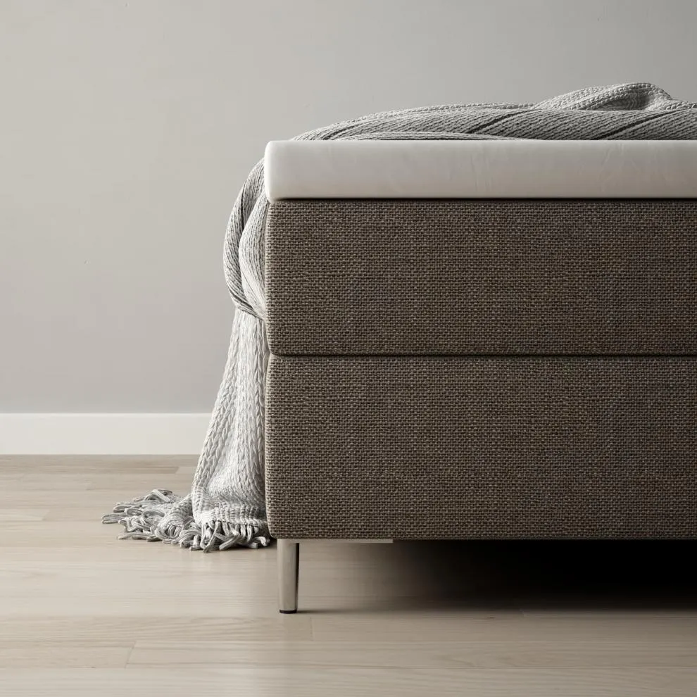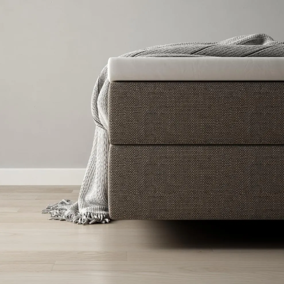 Pour le lit Boxspring Silence, vous disposez de combinaisons de tissu et de couleurs triées sur le volet. Les éléments piqués de la tête de lit sont disponibles en trois couleurs de base : Grey, Aqua et Sand. Pour les éléments restants, vous pouvez choisir une couleur contraste parmi notre gamme de tissus de revêtement. La synergie forme un contraste fabuleux qui met en avant la tête de lit, lui donne de la fraîcheur et confère un charme unique à votre lit Boxspring.