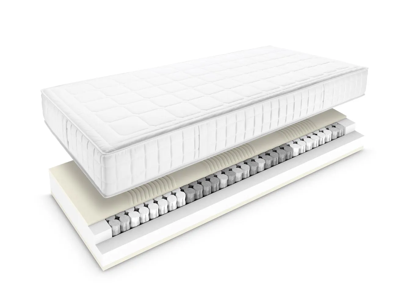 Le matelas grand confort Lux vous séduira par ses qualités inhérentes : Un noyau de ressorts ensachés Vespa de 12 cm de hauteur vous assure un soutien fiable du corps. Grâce à la structure spécialement conçue du noyau, répartie en 7 zones confort, le matelas épouse votre morphologie en toute flexibilité. Les zones sensibles du corps peuvent ainsi s'enfoncer doucement dans le matelas grâce aux zones épaules et bassin spécifiques, pour vous assurer une position de couchage saine. Un rembourrage intermédiaire en mousse confort de 3 cm d'épaisseur, avec zone médiane renforcée, parachève la remarquable sensation de couchage, tandis que les bords renforcés vous assurent un plus de stabilité. Laissez notre matelas grand confort vous entraîner dans un monde du sommeil plein de luxe.